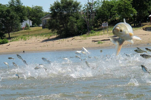 在二十世纪七十年代在阿肯色引进亚洲鲫鱼之后,该鱼种就溯游到密西西比河,贪婪地狂吃食物和快速繁衍。这种银色的鲤鱼,跳跃时的场面非常壮观,甚至能撞倒捕鱼者身上。在一场年度Redneck捕鱼比赛中,人们都拿着棒球拍来到伊利诺斯河,醉心于他们的复仇行动了。