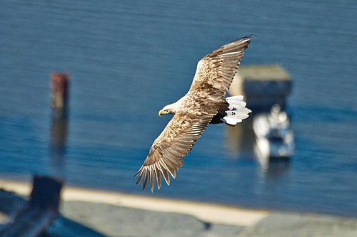 白尾鹞鹰在斯特拉特福德海边草地上空游弋,感觉非常勇猛。它把一只警惕的雀鹰赶出了公园,又高速飞过了一个海鸥群,然后心满意足的飞回了巢穴来炫耀它灰色后背上的黑色羽毛。一名观鸟者深吸一口气说:“它就是那样的出众。”说着,那只很出众的鹞鹰回过紧盯着她。