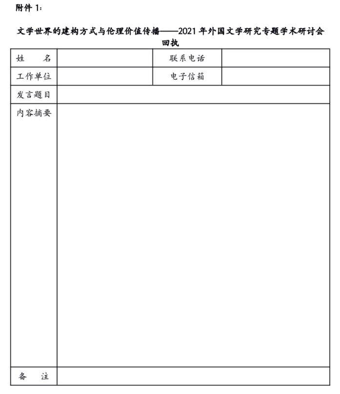 请有意参会者填写回执(见附件下载),并在2021年10月20日前发送至会务组邮箱wgwxyj2021@163.com。会务组将在2021年10月30日前发出正式参会通知。